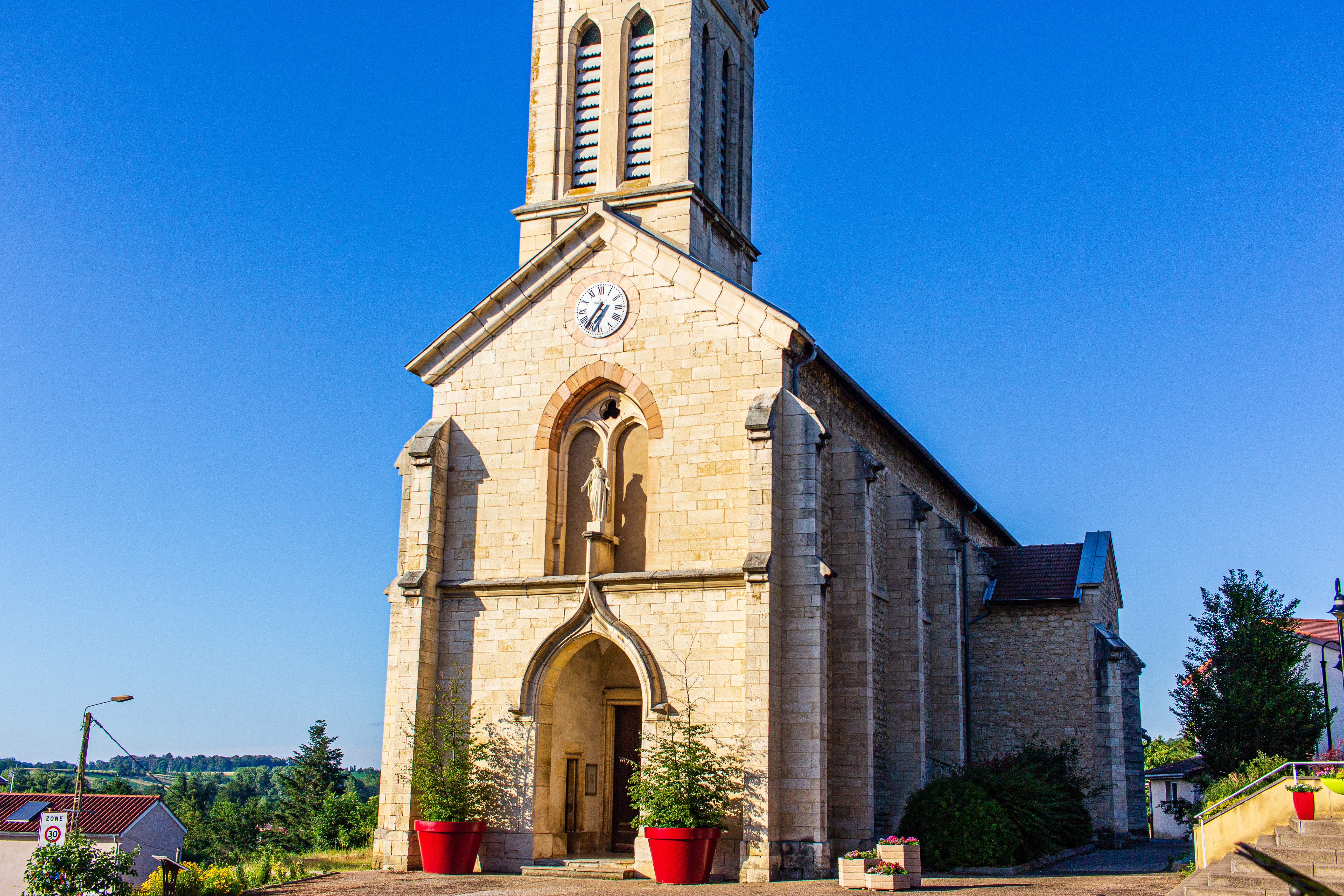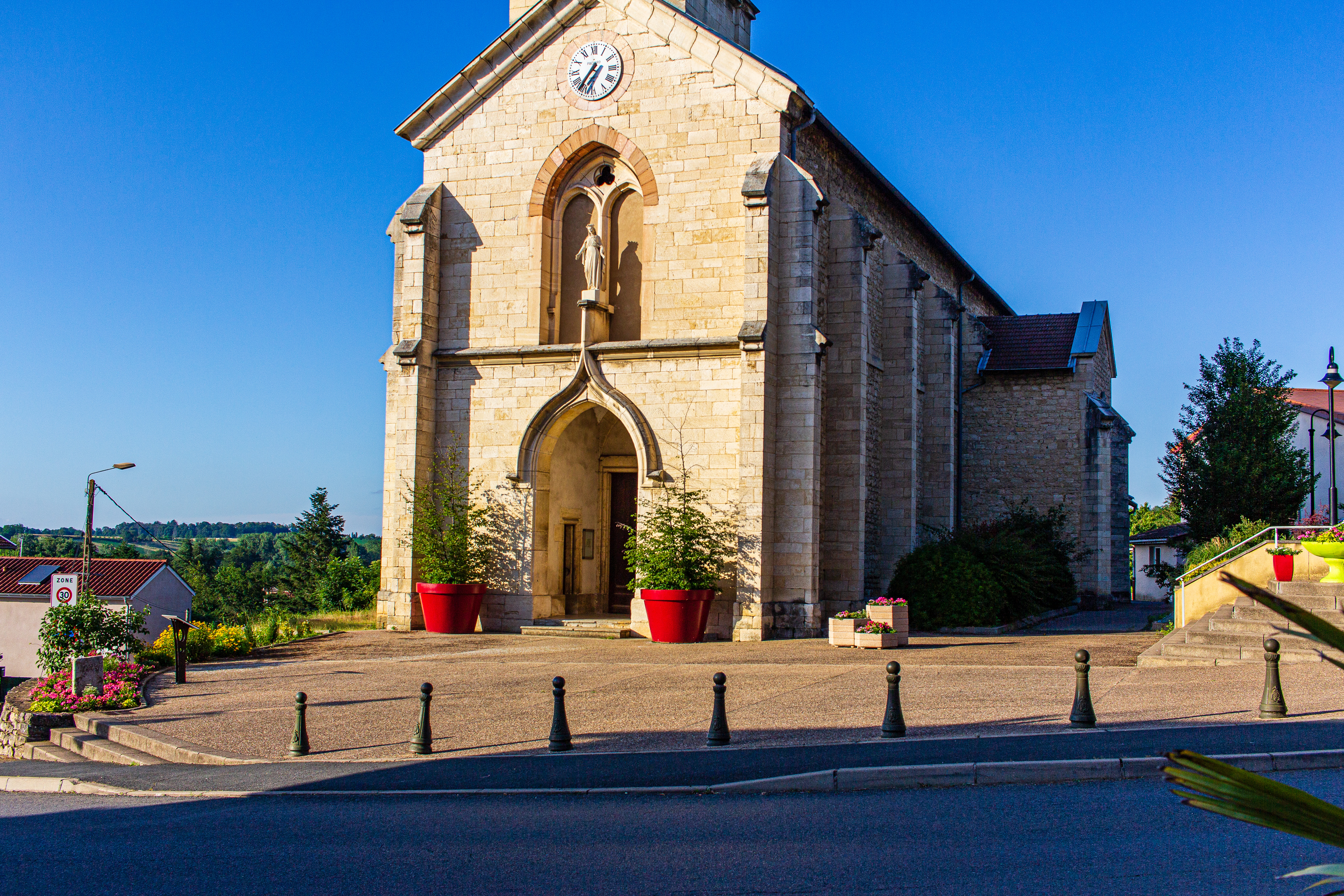 Lorsque j’ai voulu photographier cette église, une fin d’après-midi de Juin 2019, je n’avais pas suffisamment de recul pour pouvoir le saisir dans son intégralité avec mon APN (CANON EOS-60D équipé du EF-S24mm f/2.8 STM Pancake). Je me suis alors souvenu de la lecture quelques temps auparavant d’articles de blog traitant de sujets assez similaires : comment concevoir une photographie de plus grandes dimensions que ce que son appareil photo est susceptible de fournir.